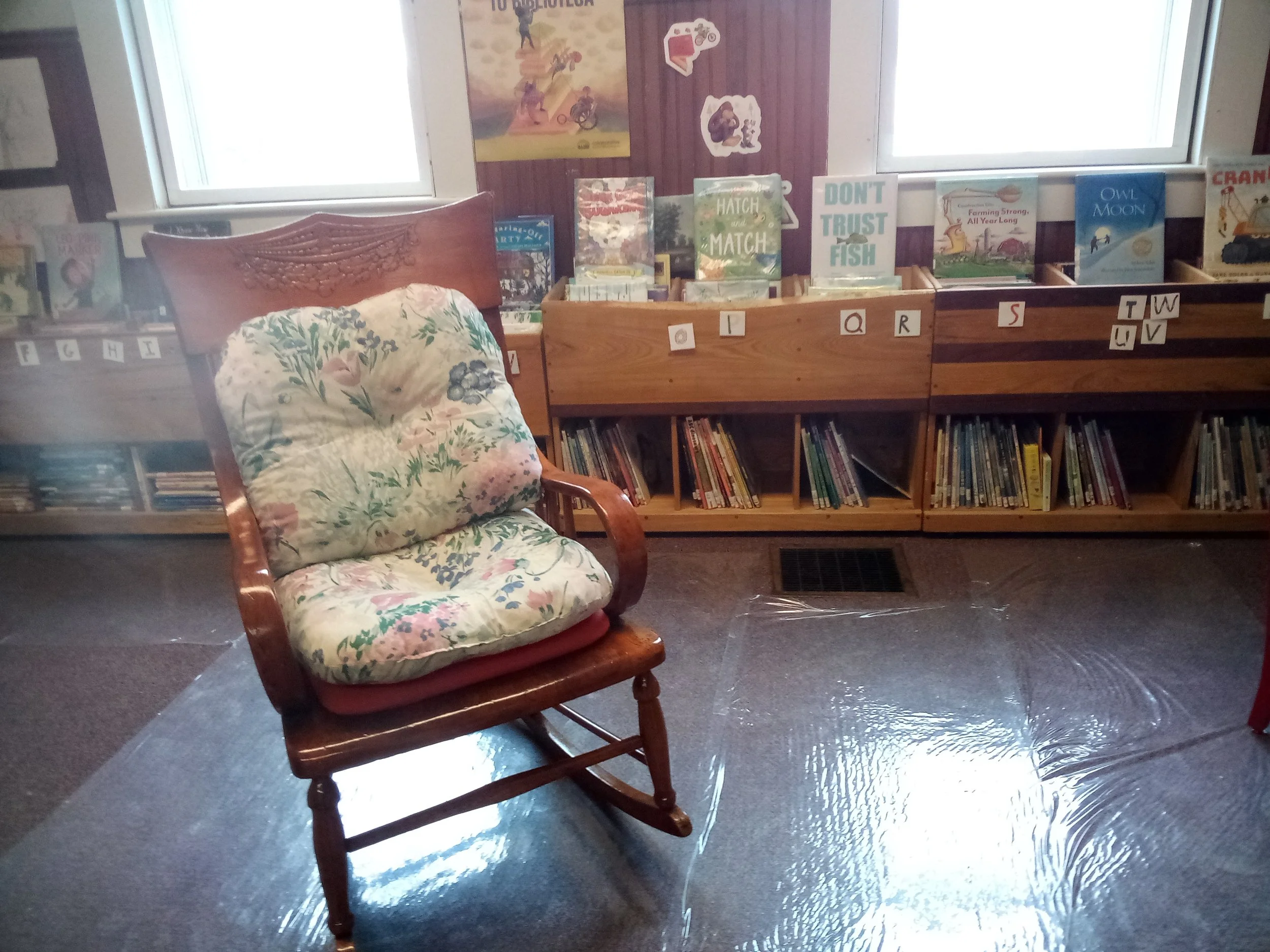 Construction has started elsewhere in the building, but not too much has changed in the library yet. Most noticeably, the library carpet is now protected by plastic that makes a crinkling noise when we walk on it!